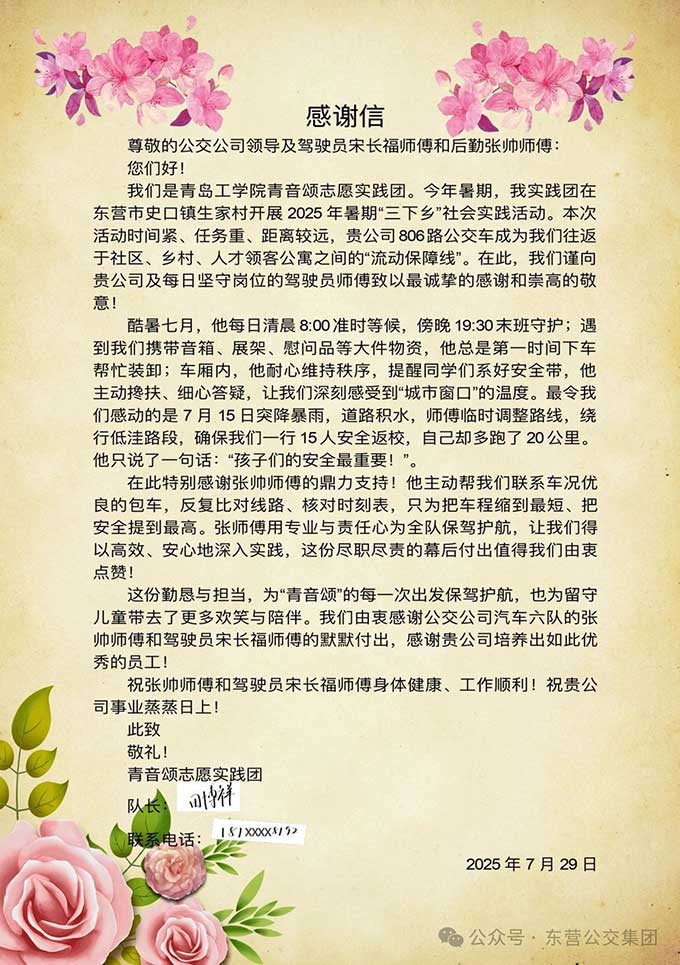 圓夢高考|“你們全力以赴,我們全程護航!”為保障高考期間交通順暢有序,東營市公交集團以高度的責任感提前布局、周密安排,傾力打造安全、高效的送考保障體系,誓為全市考生鋪就一條平安赴考的坦途。市公交集團選拔駕駛經驗豐富且服務意識突出的優(yōu)秀駕駛員...[查看更多>>]